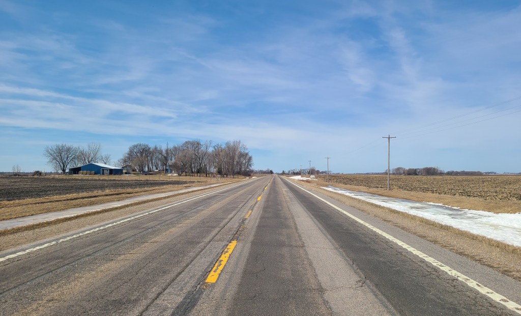 Minnesota was covered by glaciers, more than once. As they came and went they altered the landscape, making a flat earth into something more interesting. Unfortunately, they weren’t everywhere. There are some parts of the state that are flat as a pancake. And I got to experience some of that. Even the Dakotas had rolling hills. I was in flat nowhere.