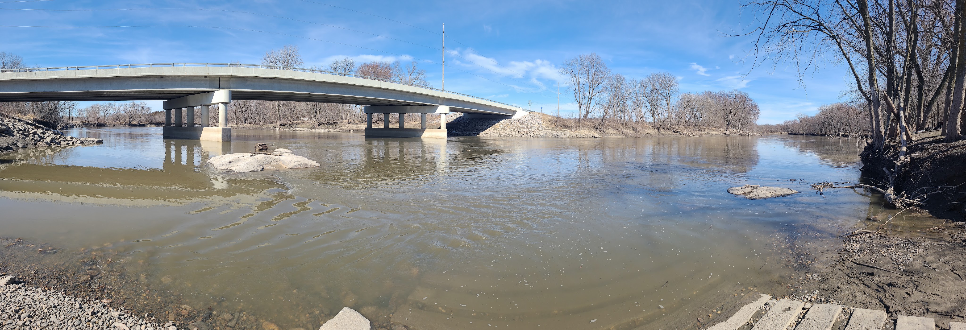 Eventually I dropped into the Minnesota river valley and got a chance to see the river. It was still a river, not a creek or stream. But it was absolutely smaller than the river that meets the Mississippi. It did not look like commercial (or even recreational) traffic would spend any time going up and down the river at this point. Though I’m sure there are jonboats that fisherman bring. While I drove across a bridge or two, there were other roads and bridges crossing the river. In one case a very muddy dirt road led to the river, where a very muddy, very not paved or gravelled bridge crossed the river. I’m guessing there were a culvert or two allowing the river to continue on it’s way.