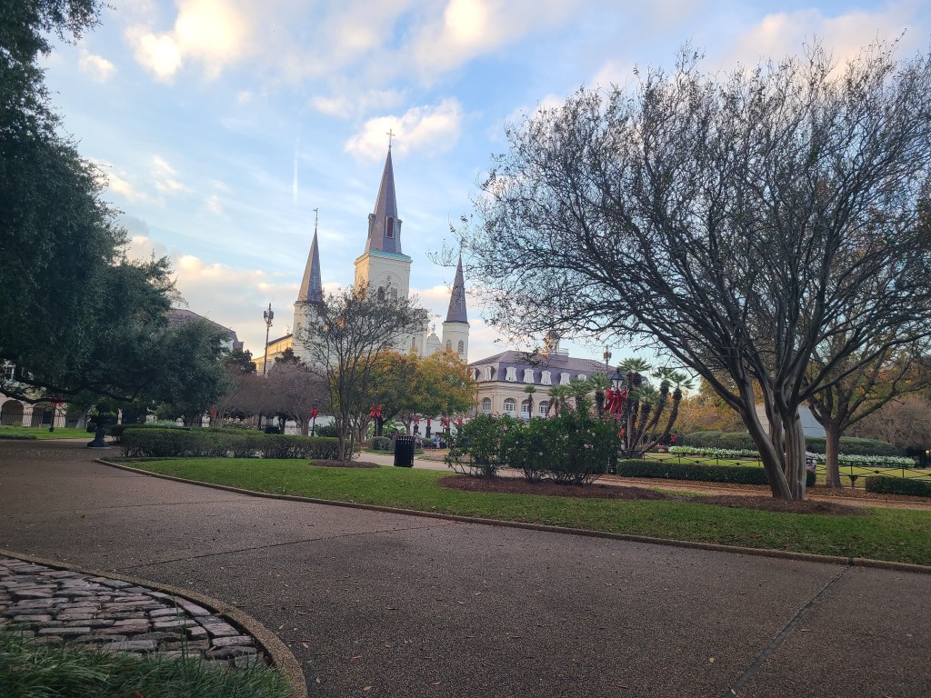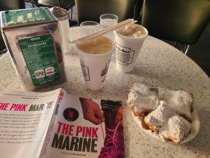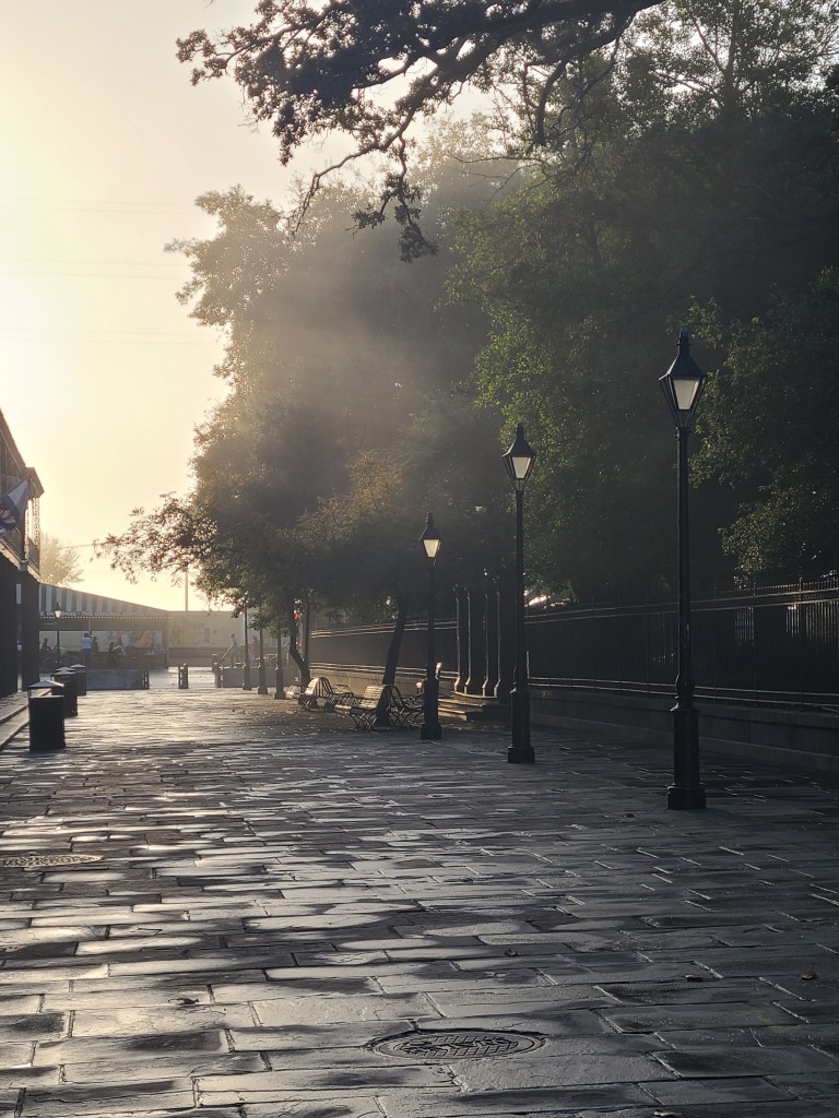 A few last thoughts about New Orleans. Managed to get out and get to Cafe Du Monde for juice and coffee. Loved that hotel. The shower was one of those sunflower looking things that mimics rain, except the water falls too lightly to get. a proper shower – but this one had pressure! The controls were on the opposite wall from the showerhead. The room felt royal. No typical hotel tan, and the in room coffee maker had *two* decaf cartridges. Not the standard single. I wasn’t quite as early out the door this morning, so I didn’t get the same experience of watching the city wake up over half an hour. But it was still quite peaceful.