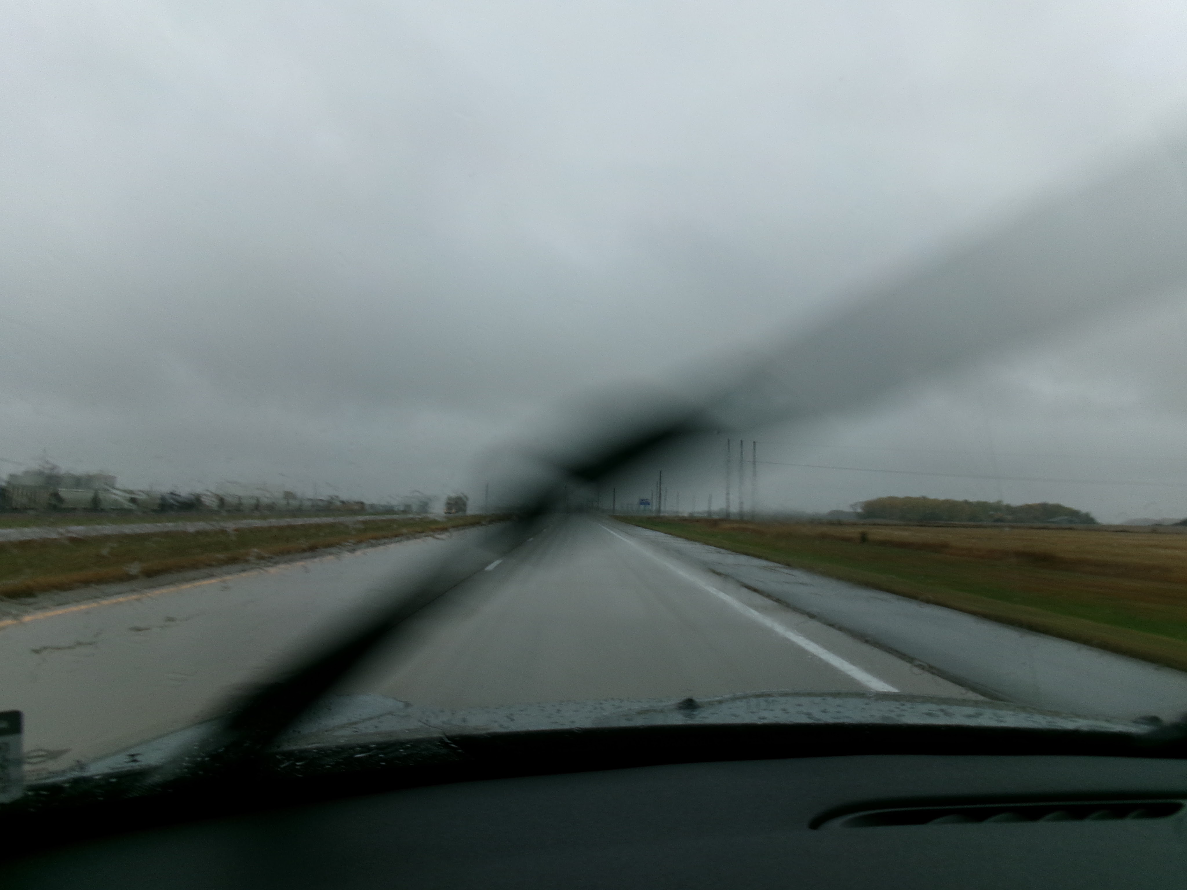 Weather: Rainy morning ranging from drizzle to downpour. Rain stopped at the SD border.