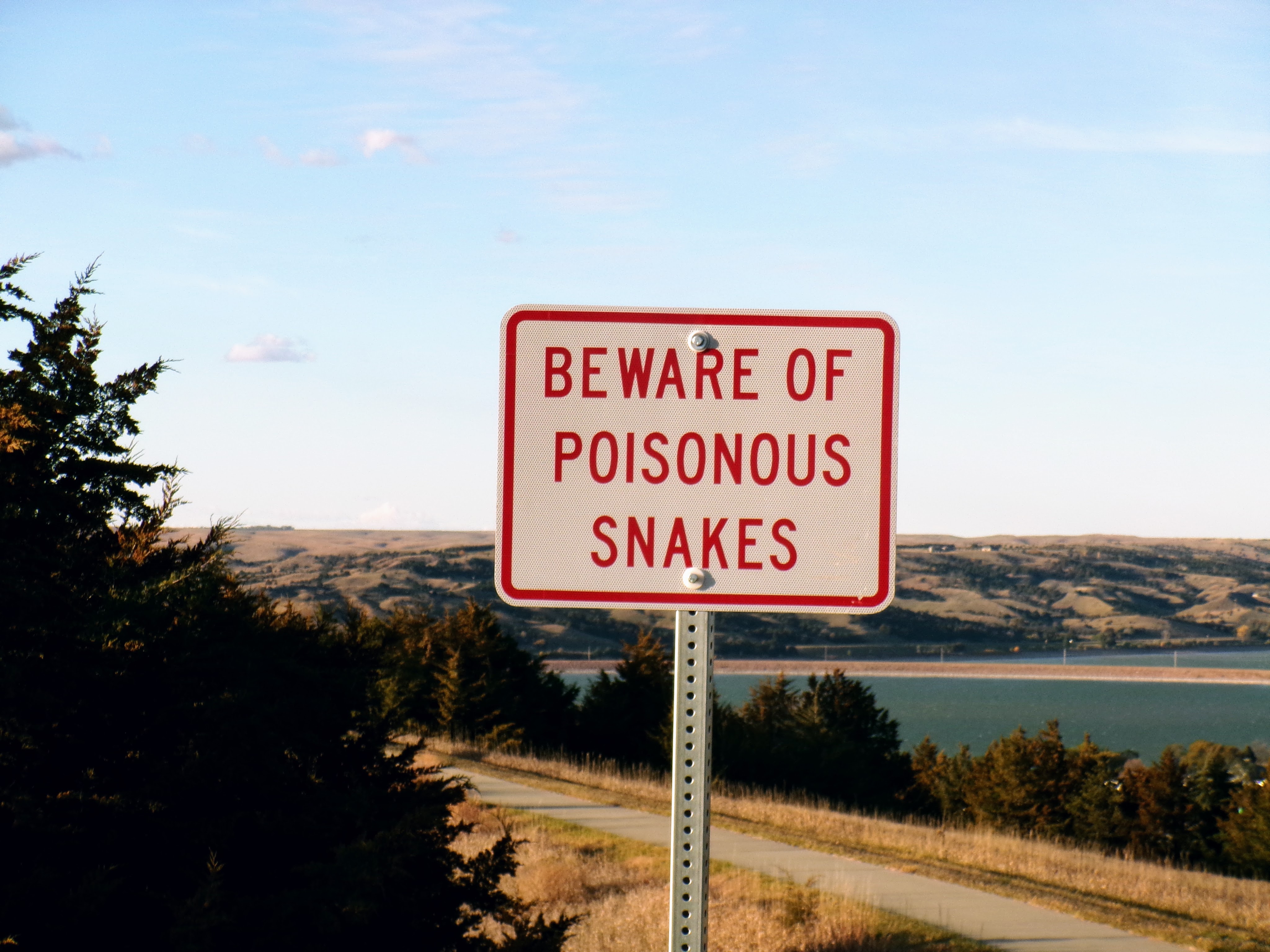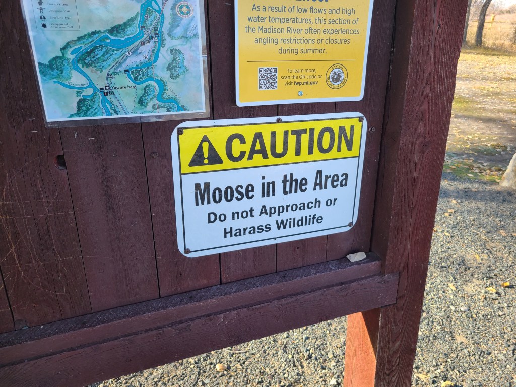 Welcome to my morningI wanted to stop / hotel here because it’s the Missouri river, which is cool. But also because this is one of the places Lew and Clark stopped on their trip upriver. There’s a cool museum and everything talking about the voyage. Which apparently has a season. Boo hoo!I was very excited to see this sign! On one hand, it’s crazy that one could run across one of them in the wild. On the other hand tasty tasty death danger! (Low SI day except here and once crossing the river.)I’m sure it’ll happen again, but I was shocked (SHOCKED!) at the hills and how not flat they were. That’s also the river right there, which of course is super cool even if it thinks it’s the longest river in North America. (It’s not.)This is the second bridge over the river in these towns. It was fun to drive across (twice!) and pretend I was Rain Main. Also, it’s a widely held belief that Lewis and Clark stopped in this area because this bridge and the Interstate 90 bridge both made it easier to get across the river,