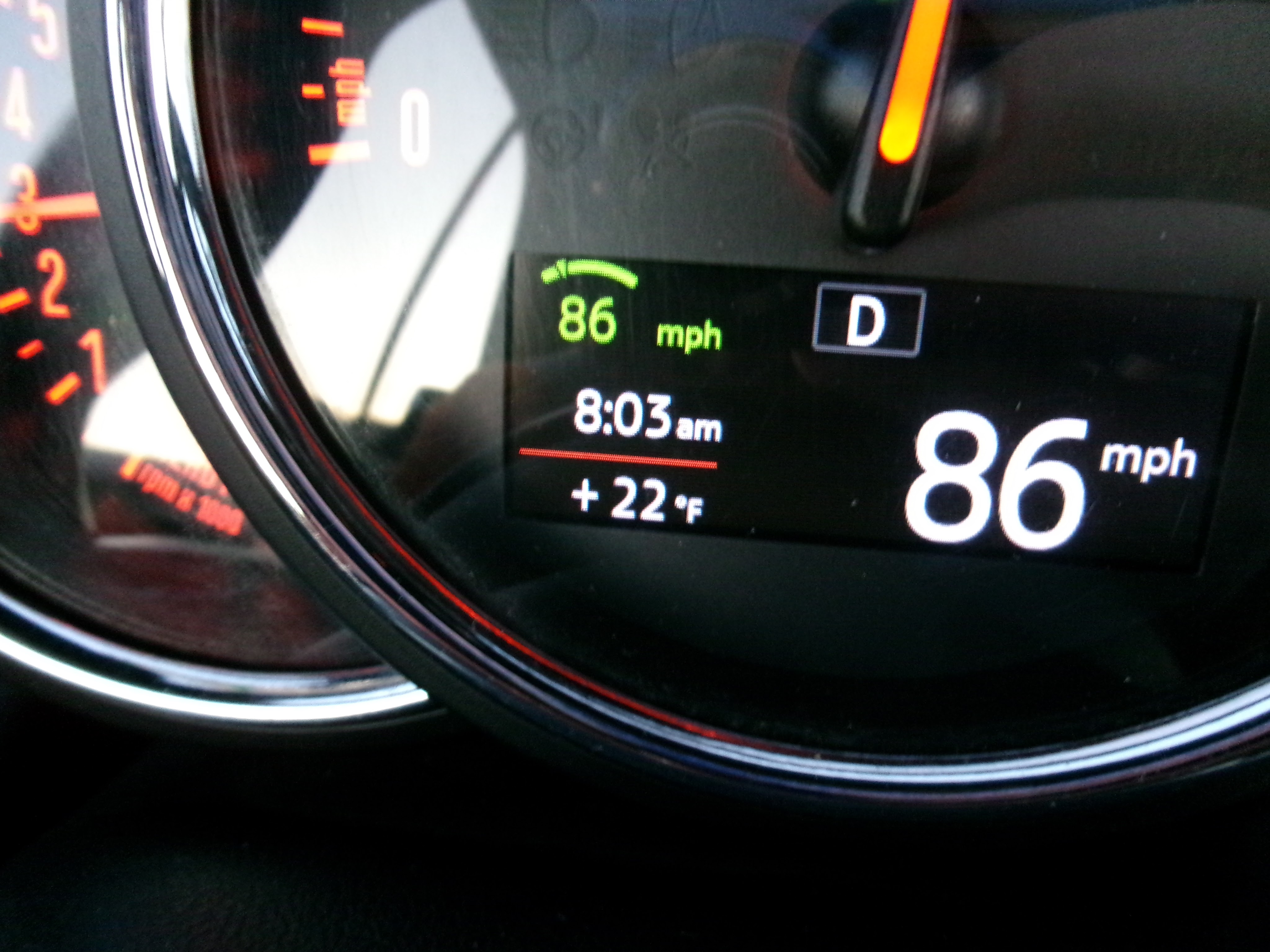 Cruise control doesn’t just keep you at speed on the highway, it actively maintains your speed. So if you’re going down a mountain pass, it downshifts for you. No brakes needed!