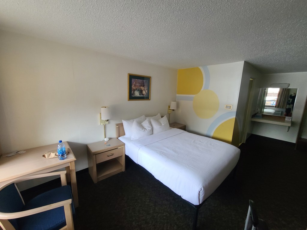 Food: breakfast latte but the lid wouldn’t stay on, lunch missed, dinner was a particular fast food I won’t see again for many states