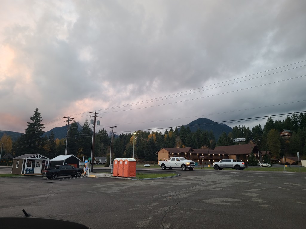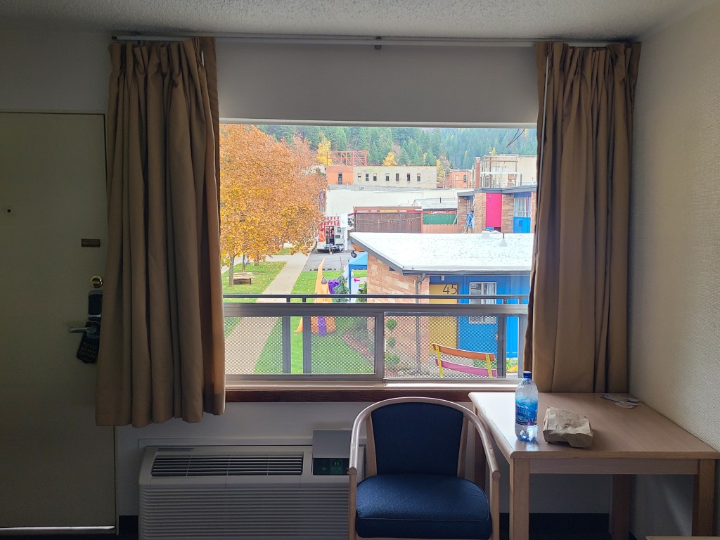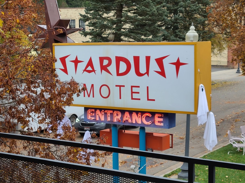 I wrote about having this feeling that I had companions. Sometimes friends, sometimes family, sometime … who knows what? Well, this morning I was going to hit the road bright and early at 7:30, but didn’t make it til 8. Because I got this collection of super long texts from my sister. She had been thinking about me and my trip, and also thinking about November. We have lost more than our fair share of people (and a dog!) in November. All by coincidence, or possibly some sort of fate. One of those people was my Dad. Her thoughts on Dad as my companion (and some other thoughts) had me crying in that retro motel in the middle of the mountains, but it was happy and sad tears.