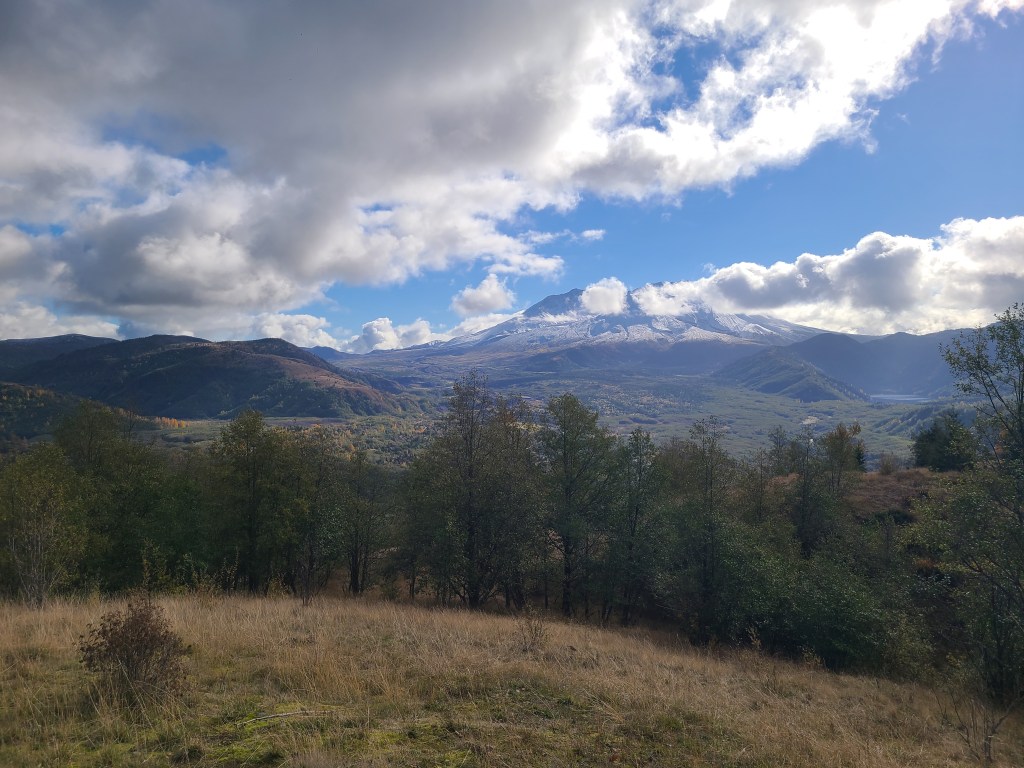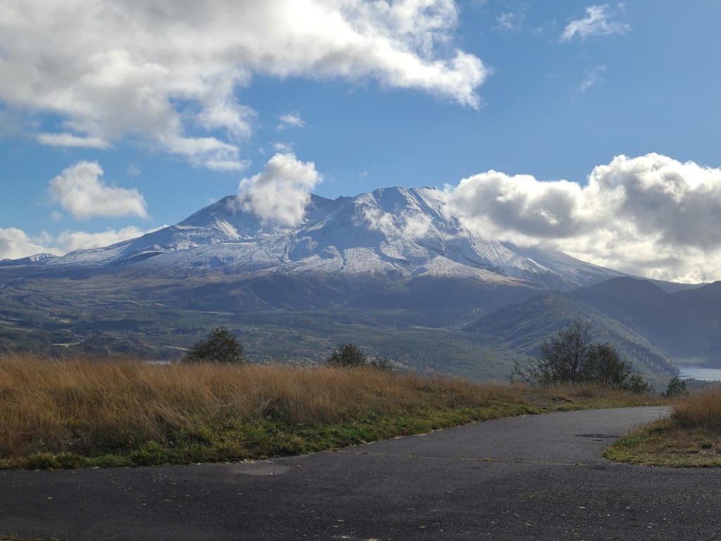 I made a trip to Portland for a friend’s wedding, and I wasn’t able to go see it up close, but you could catch a glimpse on a sunny day, so I saw it from afar. And I knew I was going to be in the neighborhood, so it ended up being the Site of Interest of the day. Digging around on google maps I understood what was open and what wasn’t. The best viewing spot, the Johnston Ridge Observatory, was closed. Actually the whole road leading up to it. But there was a National Parks (foreboding music here) visitor center, so I figured that would do. Then the shutdown happened and it looked like there would still be a parking lot to see from. So that was the plan.