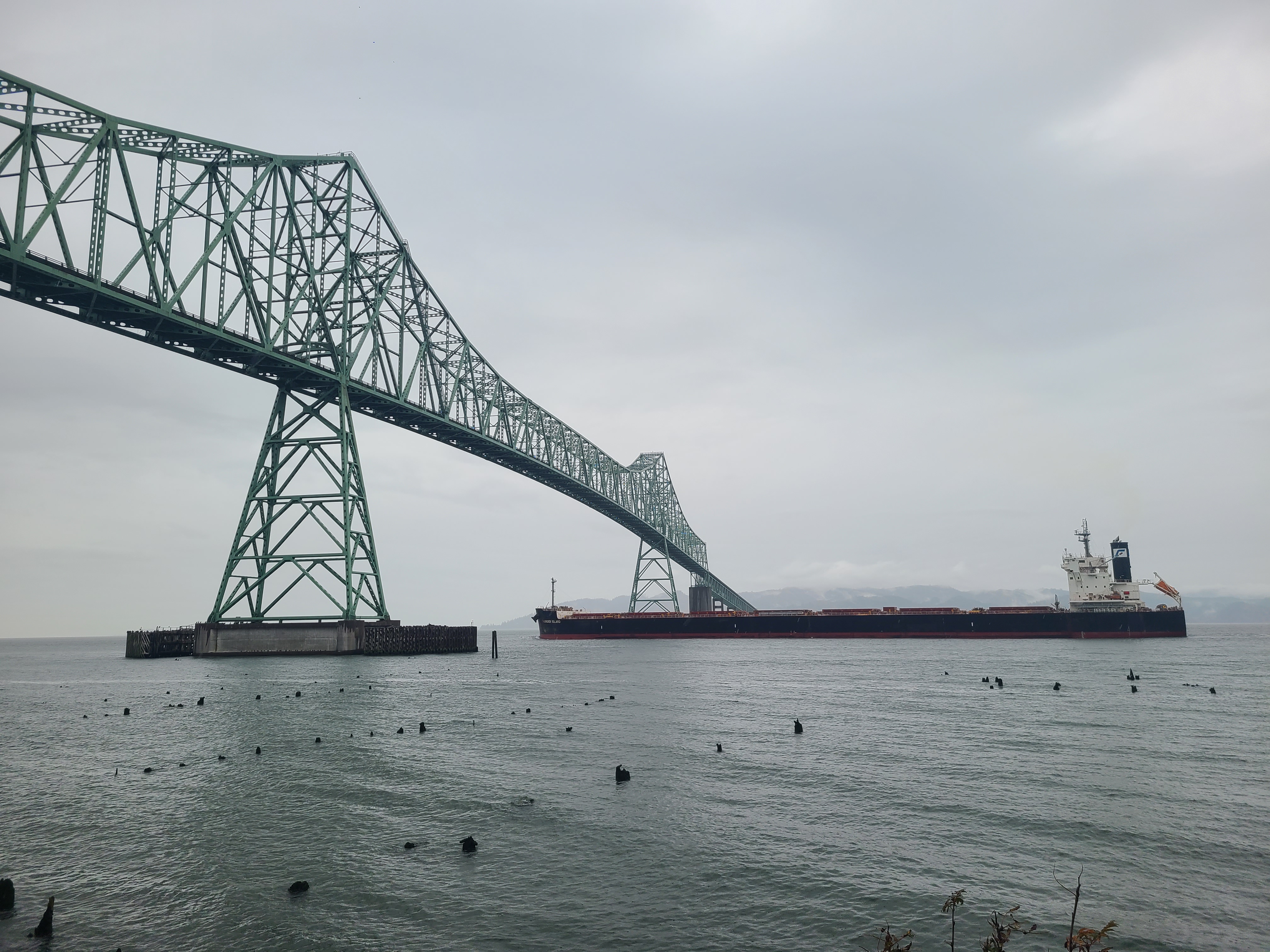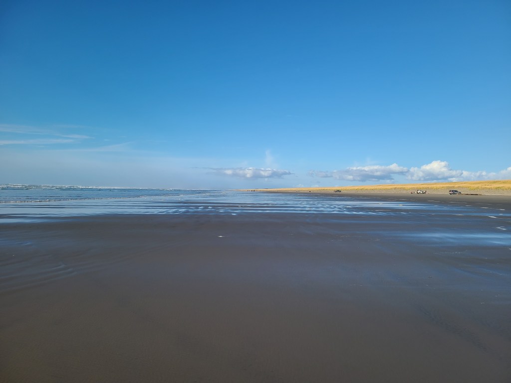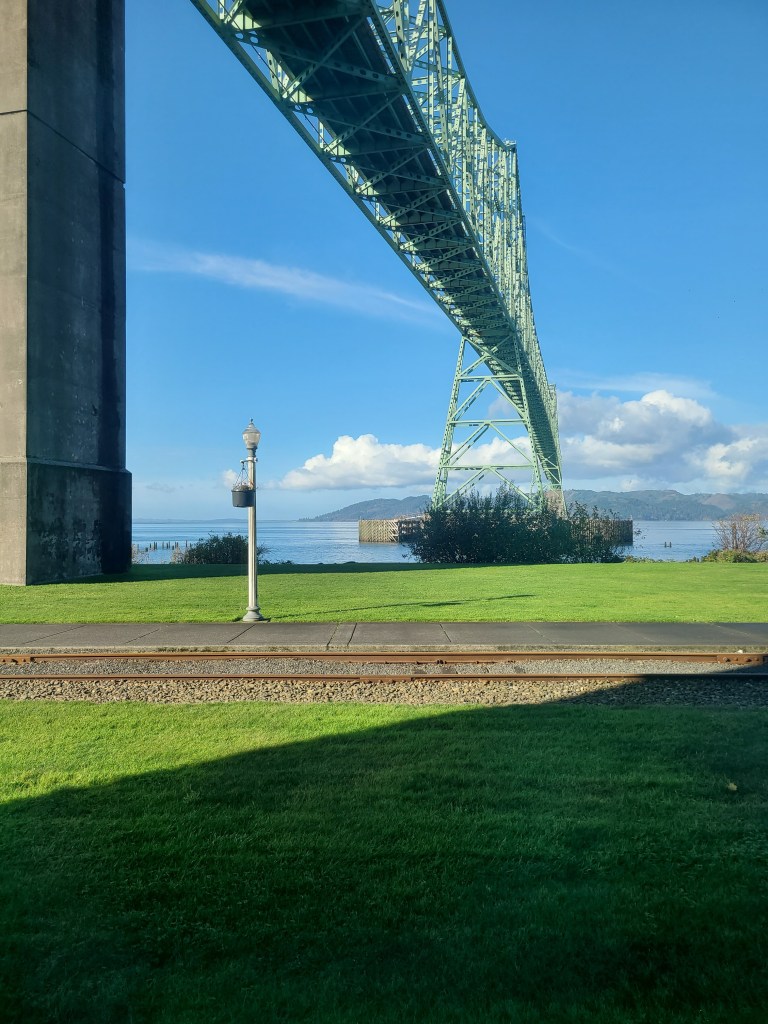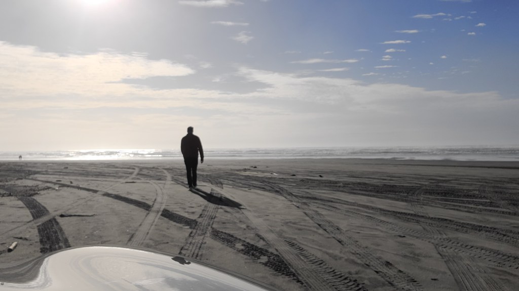 As I entered Astoria, I saw a sign indicating I was entering a tsunami danger zone. Nice! After checking into my hotel, I headed out to the closest beach on the Pacific side. After getting lost once I found the right road, and it took me straight to the beach. Like, directly to the beach. Car on the beach, I walked straight for the water. It was a bit big to get my feet wet, but I got to spend a while watching the waves. They were violent waves breaking over one another, though they we much smaller by the time they hit the beach. The waves came in over a 50 foot distance, in that some came short, and others came very far onto the beach. Took some pictures, headed back for dinner and relaxation. Not used to the time yet, so I’ve been surprised by how early it is all day.