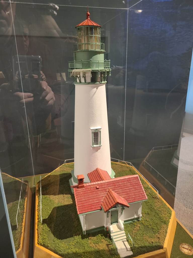 That’s an invertebrate! (foot for scale)I can’t identify these birds. They don’t look like Pelicans, nor were they flying like them but that’s what Merlin says.My buddy the moose, er, Elk.Lighthouse modelModel LighthouseBeaches are complicatedLonelier Light house